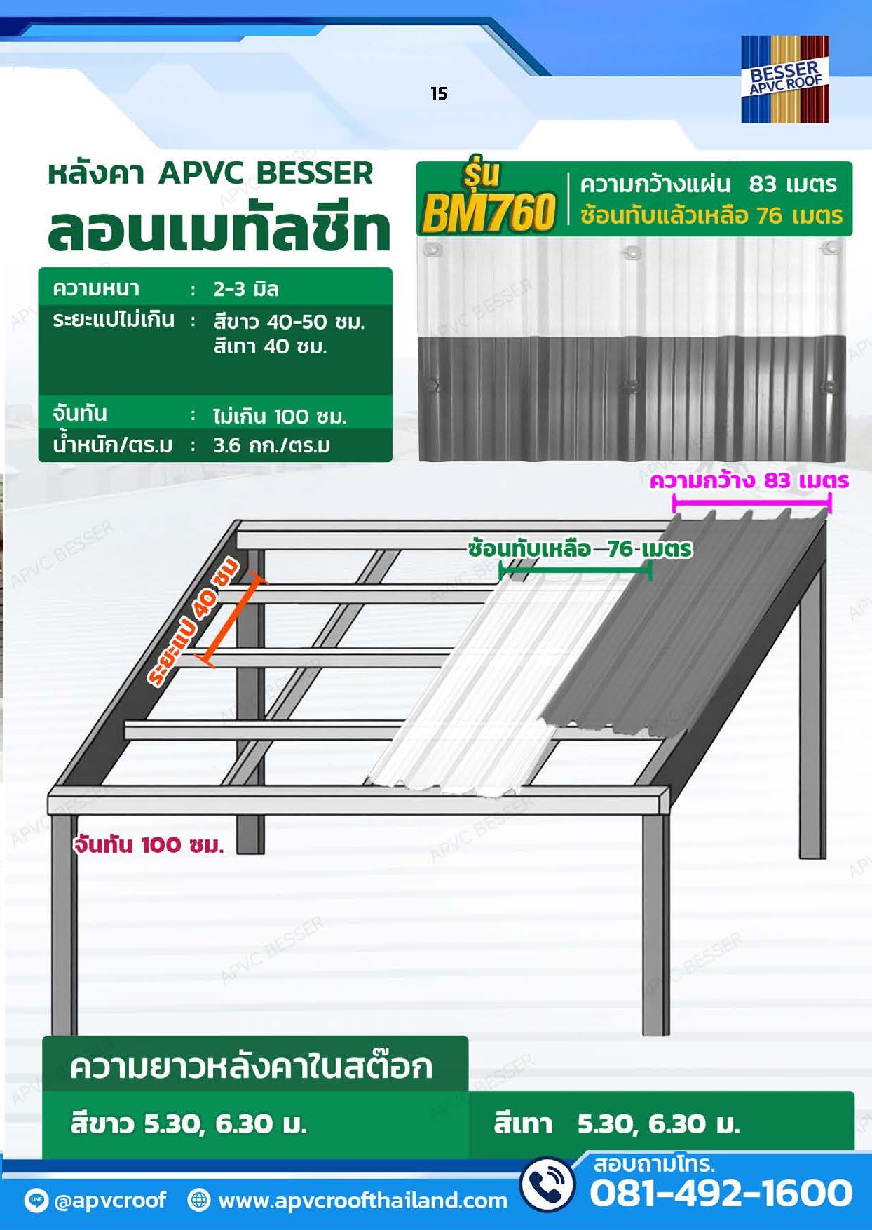 #หลังคายูพีวีซี #UPVC #หลคาเอพีวีซี #APVC #สมาร์ทรูฟ #ASA #asapvc #ตราเบสเซอร์ #BESSER